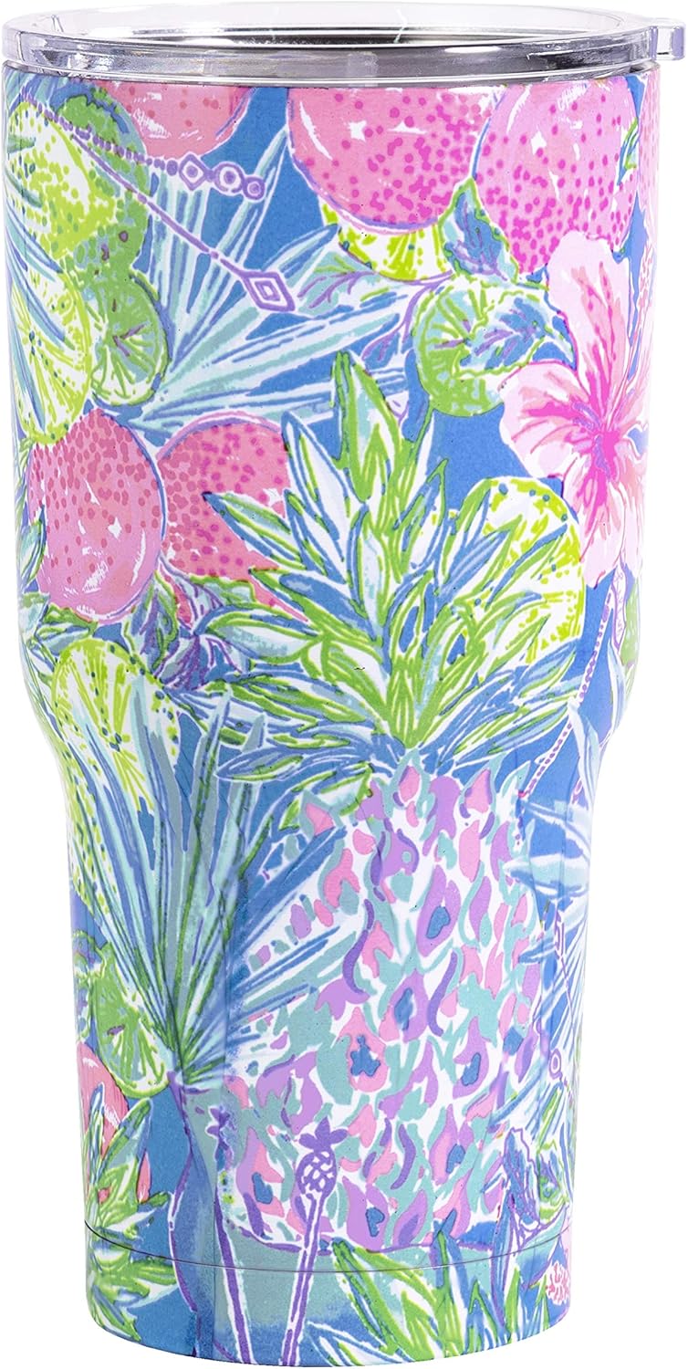 Lilly Pulitzer Insulated Cup Made of Stainless Steel Double walled tumbler that holds 30 ounces Double wall design keeps drinks cold for hours and your cup rid of condensation Lid has a silicone seal to keep it locked in place while in-use Features the multicolored Lilly Pulitzer print, Swizzle In For best care, hand wash only Take it to go in a printed Lilly tumbler that holds 30 ounces of your favorite drink! Made of stainless steel, this insulated tumbler is suitable for cold drinks. 30 ounce tumbler with lid is perfect for outdoor entertaining, so whether you’re at the beach or lounging by the pool, you'll be toasting all night long! Tumbler with straw is the perfect treat for back to school, birthdays, or even graduation!