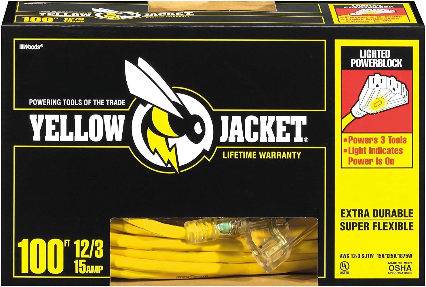 One-Day Sale: Up to 70% Off Yellow Jacket - 3 Outlet -12/3 Heavy-Duty 15-Amp SJTW Contractor Extension Cord with Lighted Ends, 100-Feet… Simple review