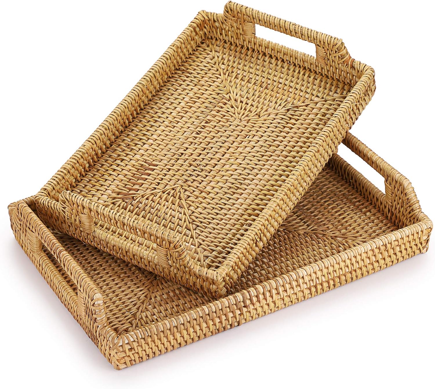 - Set of 2 - Package included 2psc rattan serving tray,one larage size and one medium size. Large Size(LxWxH):13.4'' x 9.5'' x 3.5'' ; medium size (LxWxH):12.4'' x 8.5'' x 2''